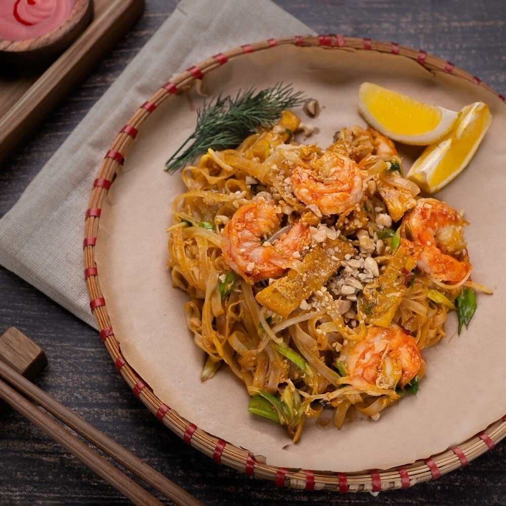 Классическая рисовая лапша с миксом из морепродуктов, яйцом, ростками и фирменным соусом. Состав: рисовая лапша, яйцо, креветки, кальмары, зеленый лук, арахис, кинза и фирменный соус.